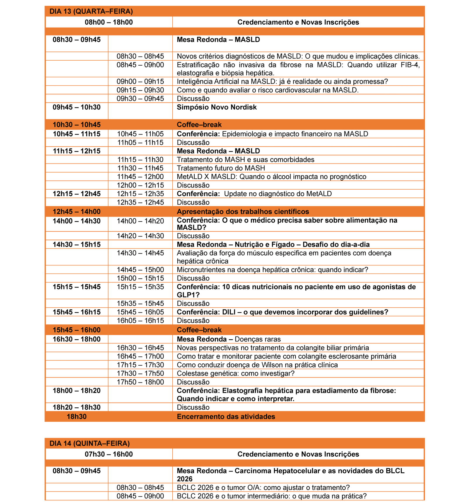 ( Quarta e Quinta) 13 a 14 de maio de 2026. Clique e adicione sua agenda.