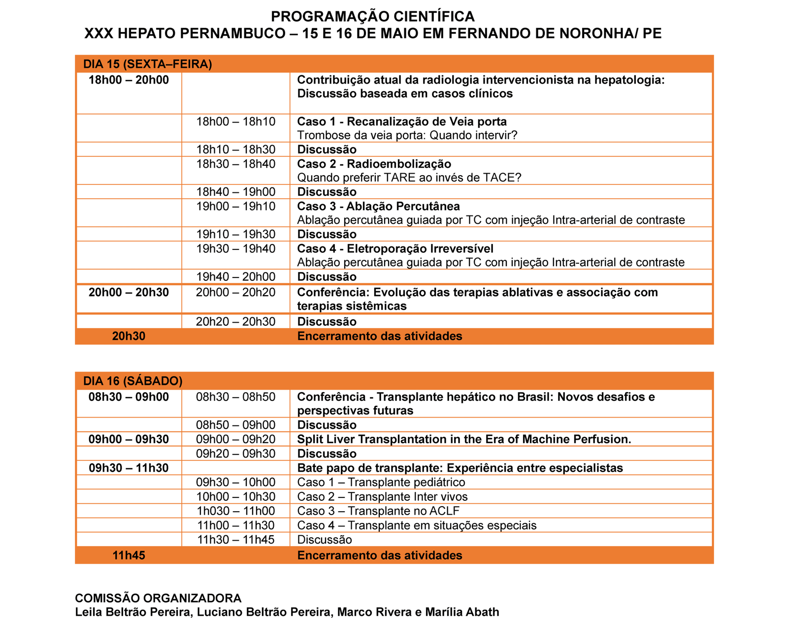 Como todos os anos contaremos com a participação de palestrantes internacionais e nacionais com expertise nos temas abordados. A programação do HEPATO PERNAMBUCO – Edição Noronha está sendo elaborada pela Comissão Científica e enviada brevemente. Serão abordados temas como: transplante hepático e hipertensão portal.